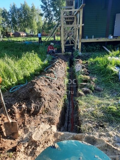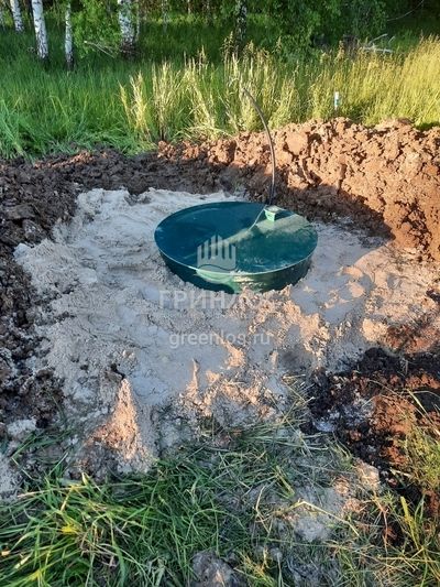Помощь по подбору оборудования. Оперативная доставка оборудования на объект. Земляные работы: подготовка котлована и траншей, уплотнение дна котлована гравийно-песчаной смесью. Установка септика ГРИНЛОС Аэро 5 Пр Миди в котлован, его обсыпка грунтом. Прокладка и подключение труб.