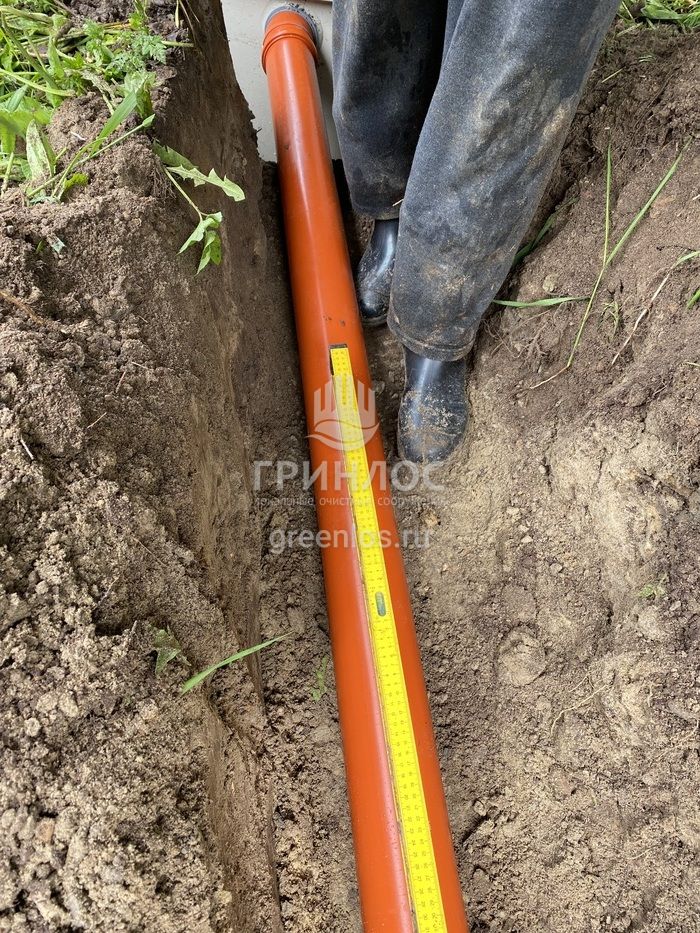 Помощь по подбору оборудования. Оперативная доставка оборудования на объект. Земляные работы: подготовка котлована и траншей, уплотнение дна котлована гравийно-песчаной смесью. Установка септика ГРИНЛОС Аква 5 Пр НК в котлован, его обсыпка грунтом. Прокладка и подключение труб.