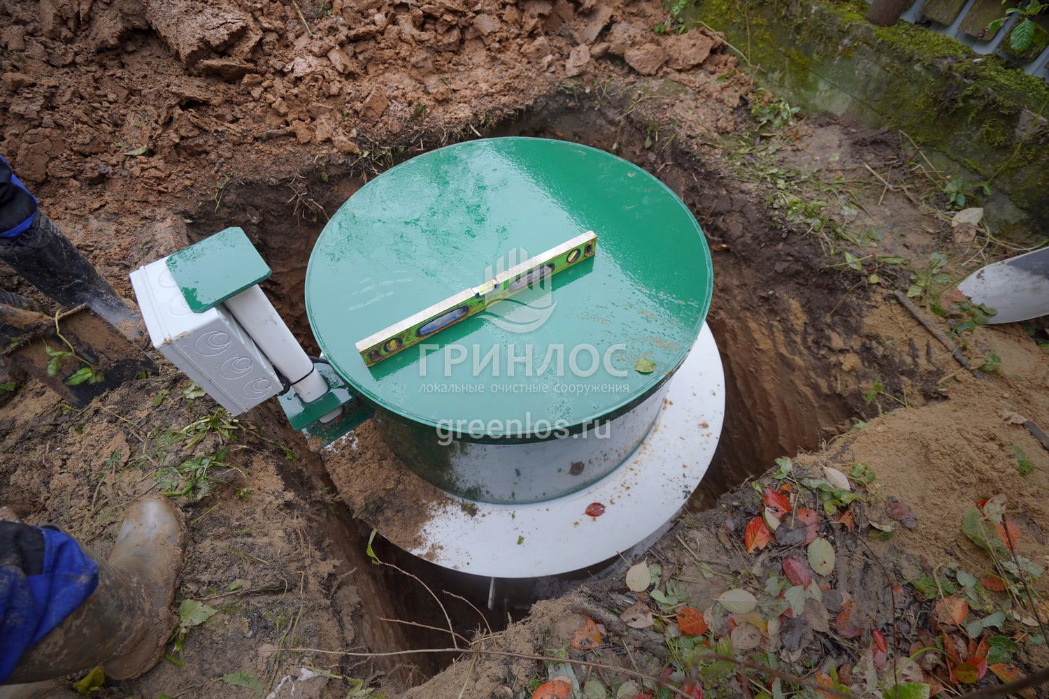 Доставка септика ГРИНЛОС Аква 3 Пр на загородный участок заказчика. Выбор места для установки. Подготовка котлована и траншей, установка септика, прокладка трубопровода, засыпка септика и труб песком. Для проверки работы системы был выполнен пробный запуск оборудования.