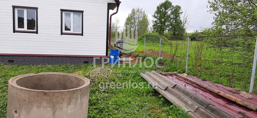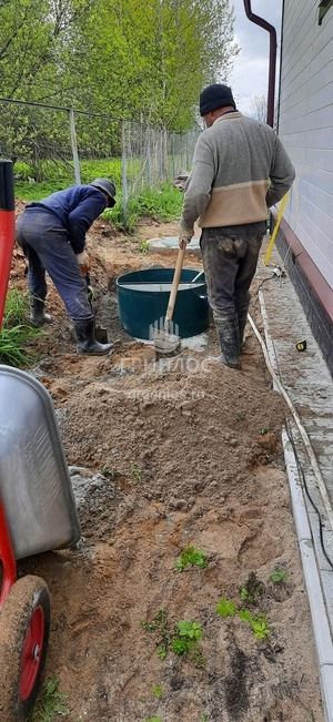 Помощь по подбору оборудования. Оперативная доставка оборудования на объект. Земляные работы: подготовка котлована и траншей, уплотнение дна котлована гравийно-песчаной смесью. Установка септика ГРИНЛОС Аэро 4 Пр НК в котлован, его обсыпка грунтом. Прокладка и подключение труб.