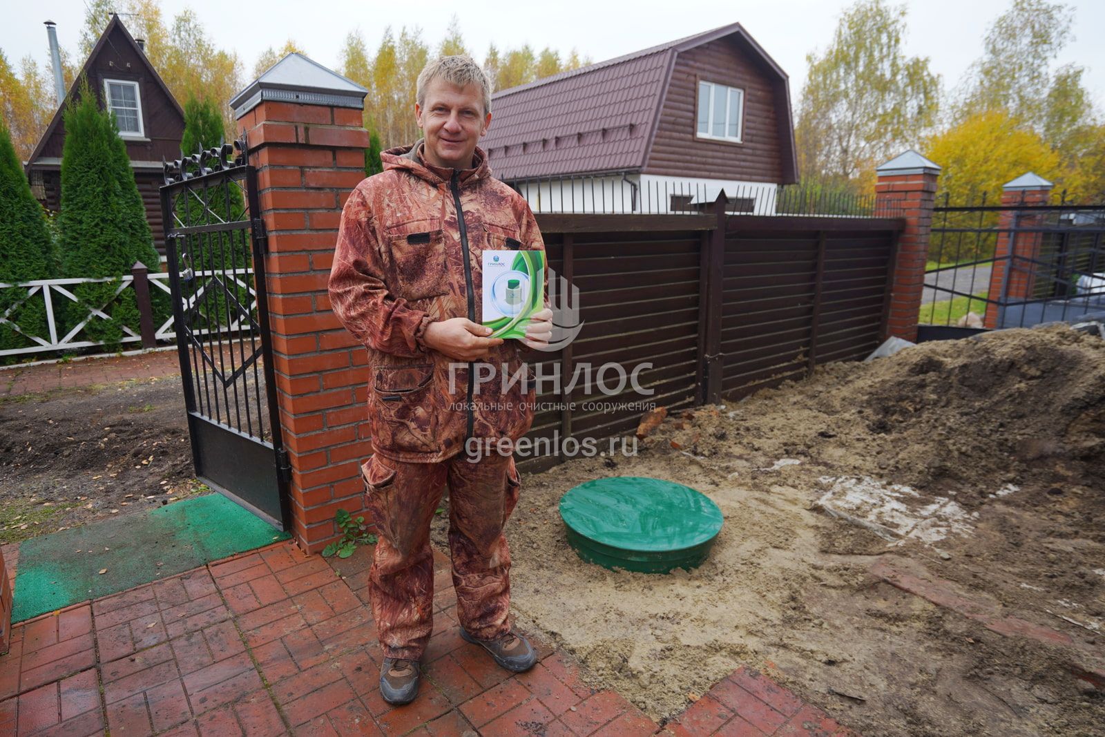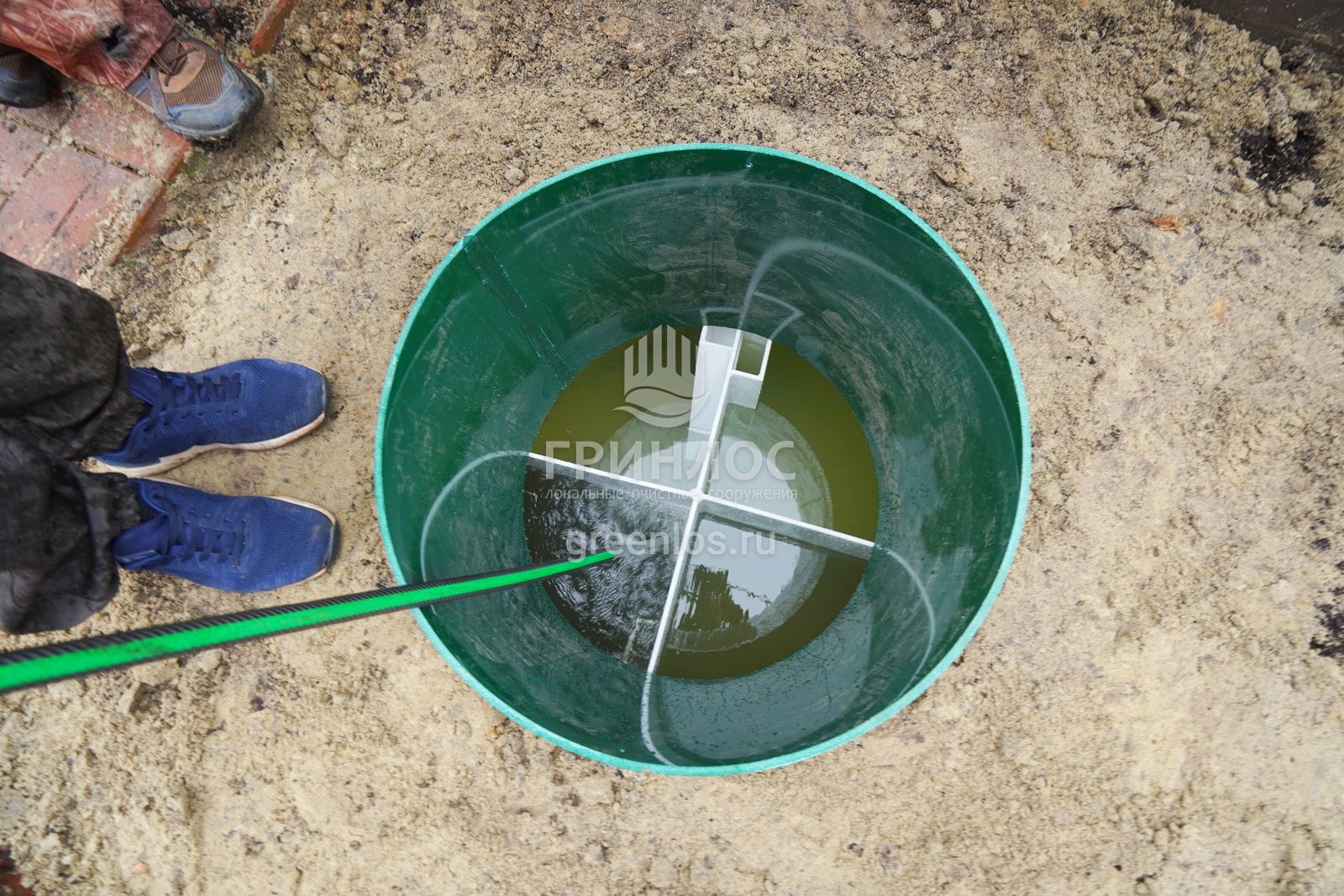 Помощь по подбору оборудования. Оперативная доставка септика на объект. Земляные работы: подготовка котлована и траншей, уплотнение дна котлована гравийно-песчаной смесью. Установка септика ГРИНЛОС Аква 3 в котлован, его обсыпка грунтом. Прокладка и подключение труб.