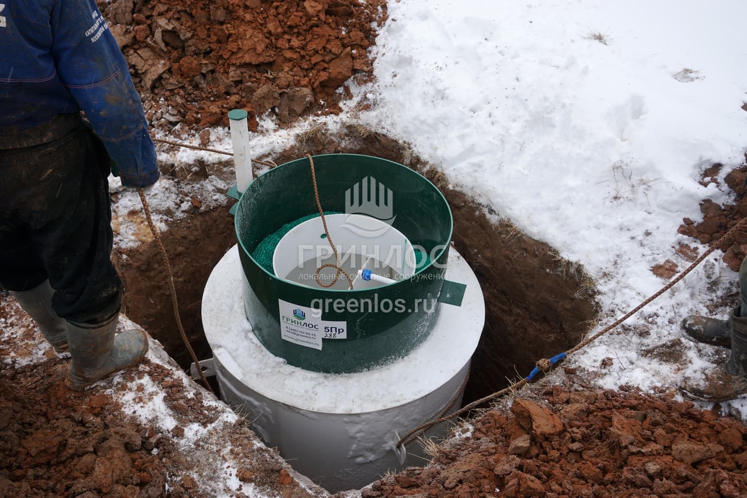 Доставка септика ГРИНЛОС Аква 5 Пр на загородный участок заказчика. Выбор места для установки. Подготовка котлована и траншей, установка септика, прокладка трубопровода, засыпка септика и труб песком. Для проверки работы системы был выполнен пробный запуск оборудования.