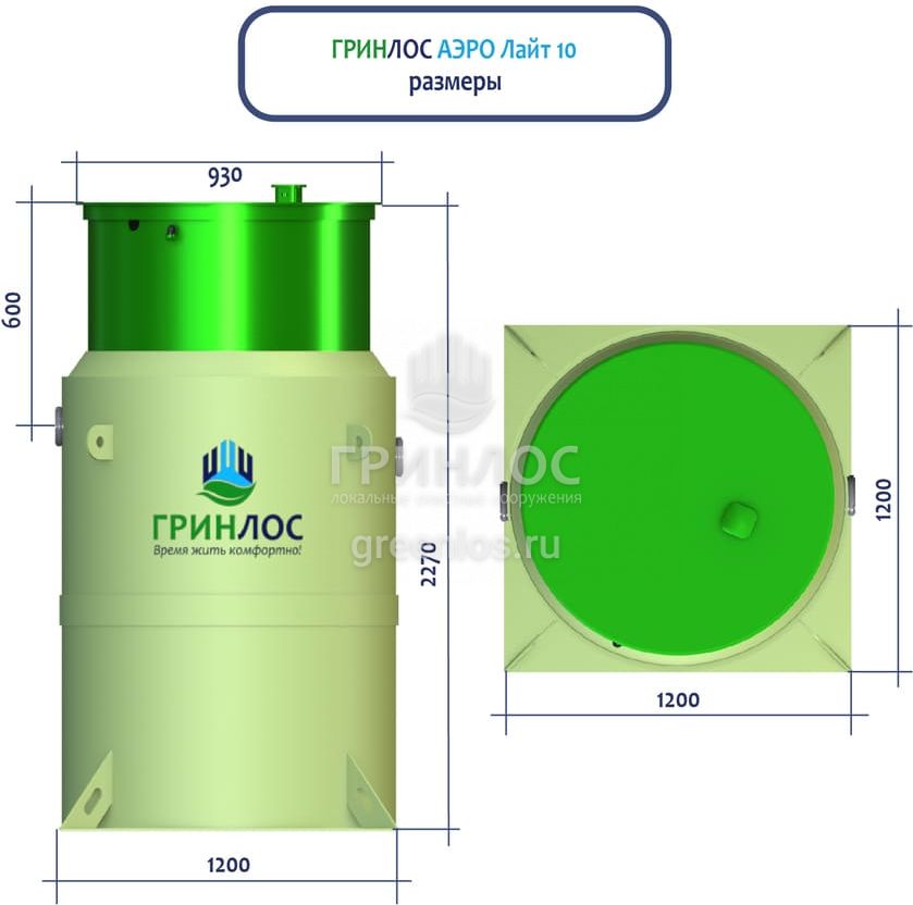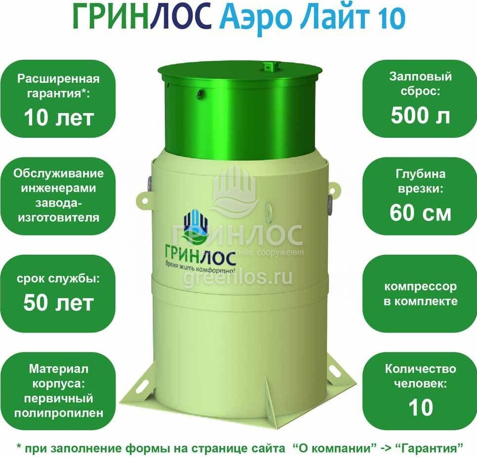 Отличительными особенностями септика Гринлос Аэро Лайт 10 являются: