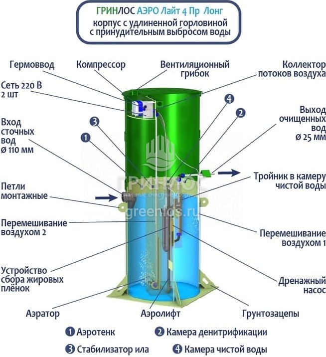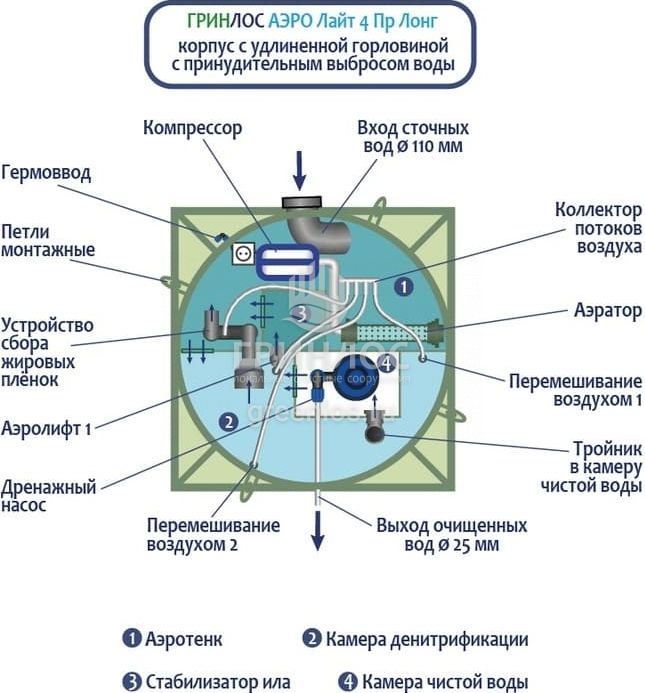 Модификации септика Гринлос Аэро Лайт 4 Пр Лонг