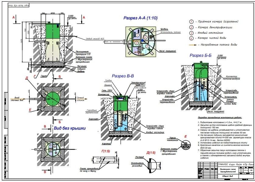 Монтаж септика Гринлос Аэро Лайт 4 Пр Лонг