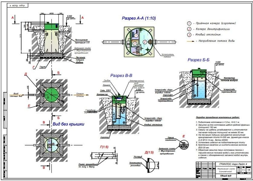 Монтаж септика Гринлос Аэро Лайт 4