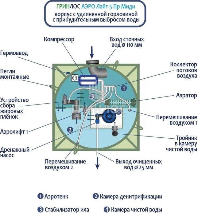 Модификации септика Гринлос Аэро Лайт 5 Пр Миди