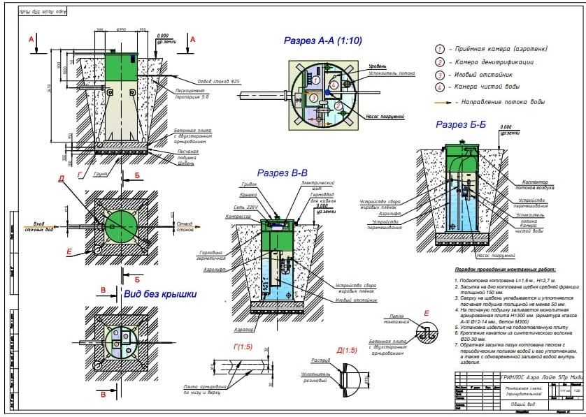 Монтаж септика Гринлос Аэро Лайт 5 Пр Миди