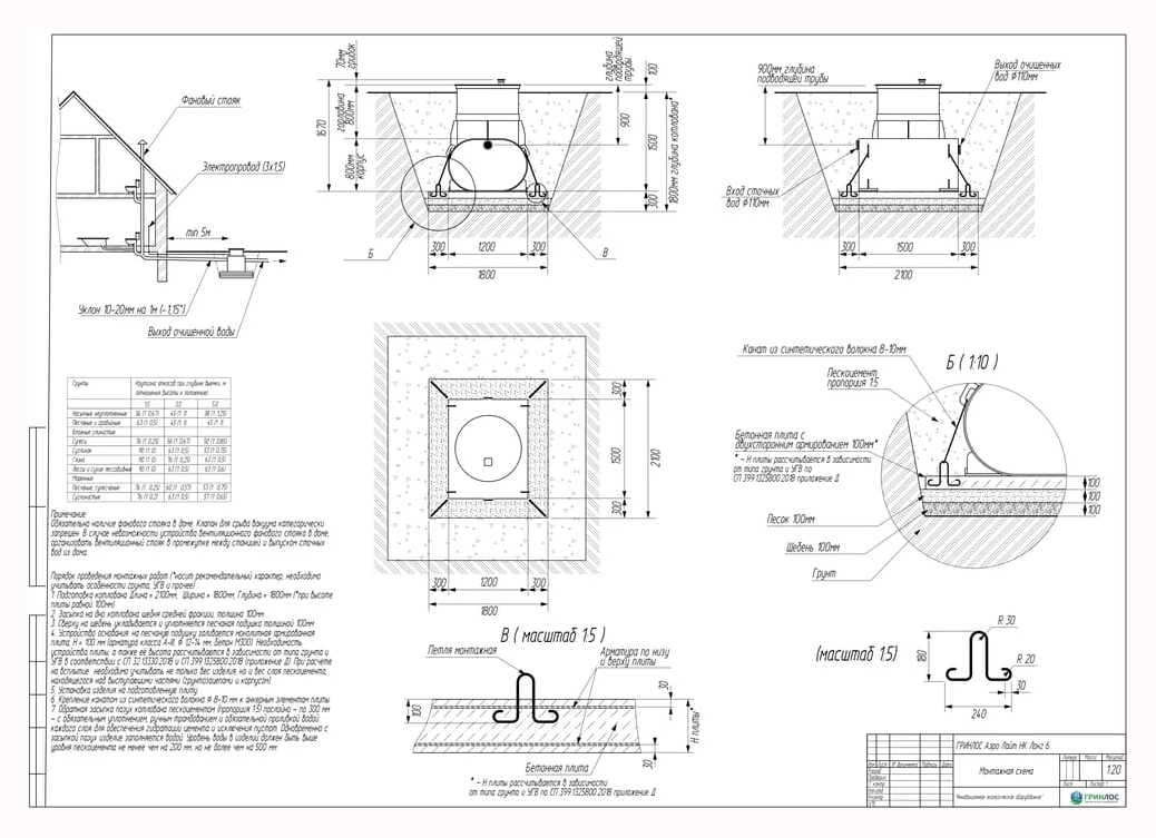 Рекомендуется поручить выбор и установку септика Гринлос Аэро Лайт НК специализированной компании. Перед началом монтажа специалисты должны подготовить котлован, размеры которого определяются конструктивными особенностями выбранной модели. Эти параметры можно найти в приложении к проектной документации. Важно оставить свободное пространство не менее 250 мм между боковыми стенками корпуса и грунтом.