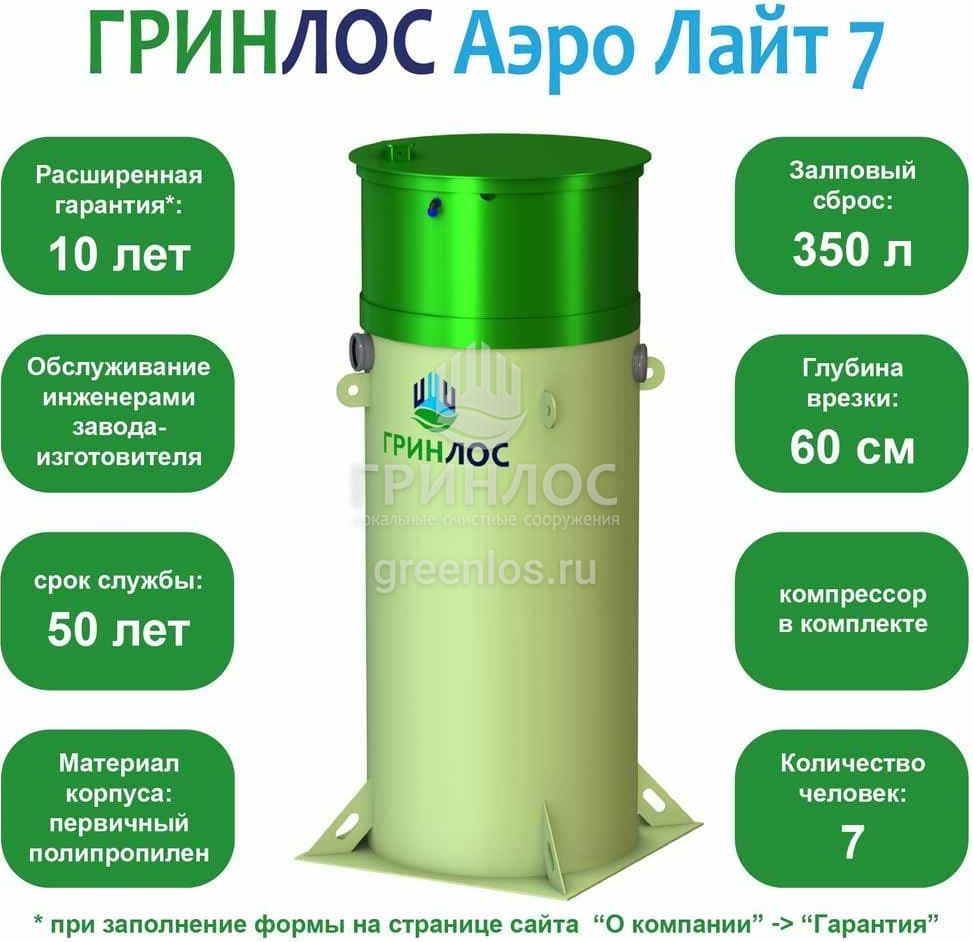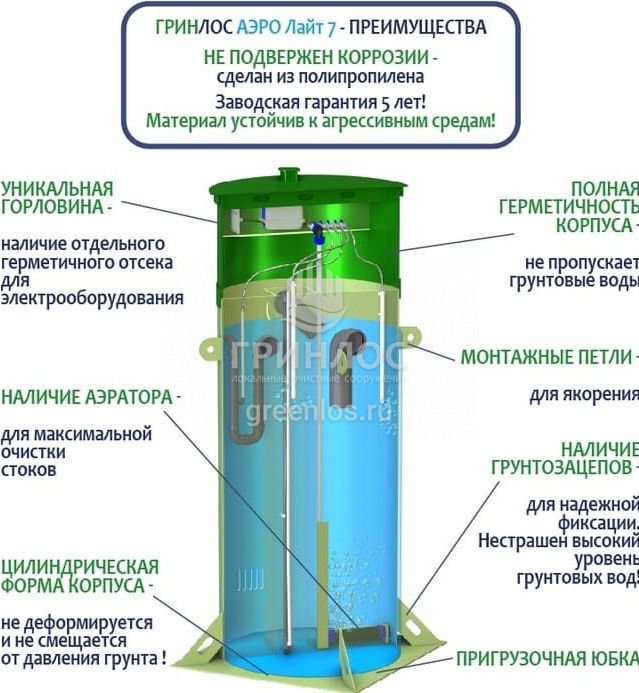 Отличительными особенностями септика Гринлос Аэро Лайт 7 являются: