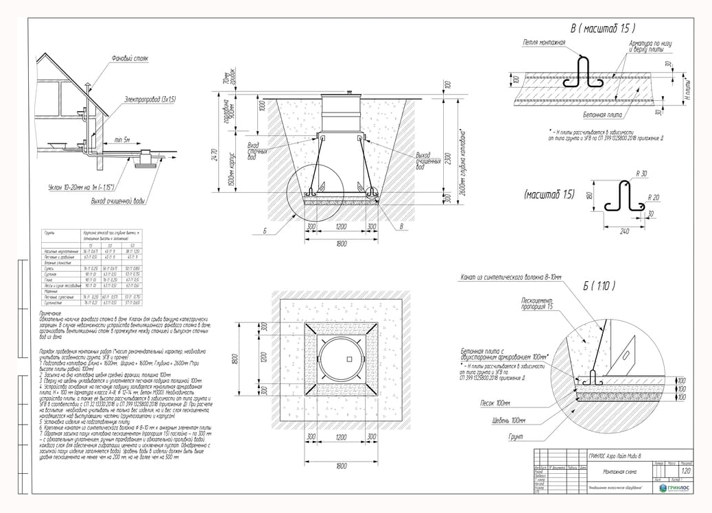 Перед непосредственным монтажом Гринлос Аэро Лайт 8 Миди специалисты осуществляют подготовку котлована. Его размеры определяются конструктивными особенностями выбранной модели оборудования. Ознакомиться с данными параметрами можно в приложении к ПС.
