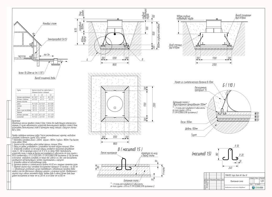 Перед непосредственным монтажом Гринлос Аэро Лайт НК специалисты осуществляют подготовку котлована. Его размеры определяются конструктивными особенностями выбранной модели оборудования. Ознакомиться с данными параметрами можно в приложении к ПС.