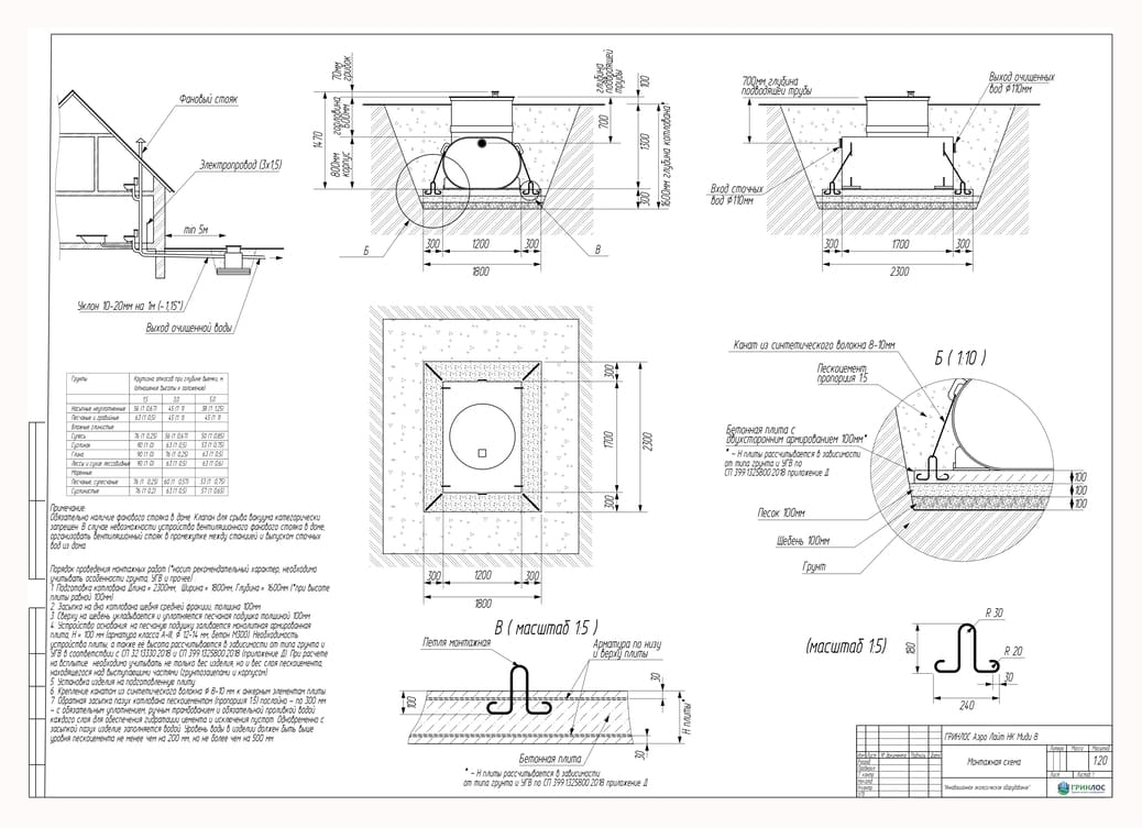 Рекомендуется поручить выбор и установку септика Гринлос Аэро Лайт НК специализированной компании. Перед началом монтажа специалисты должны подготовить котлован, размеры которого определяются конструктивными особенностями выбранной модели. Эти параметры можно найти в приложении к проектной документации. Важно оставить свободное пространство не менее 250 мм между боковыми стенками корпуса и грунтом.