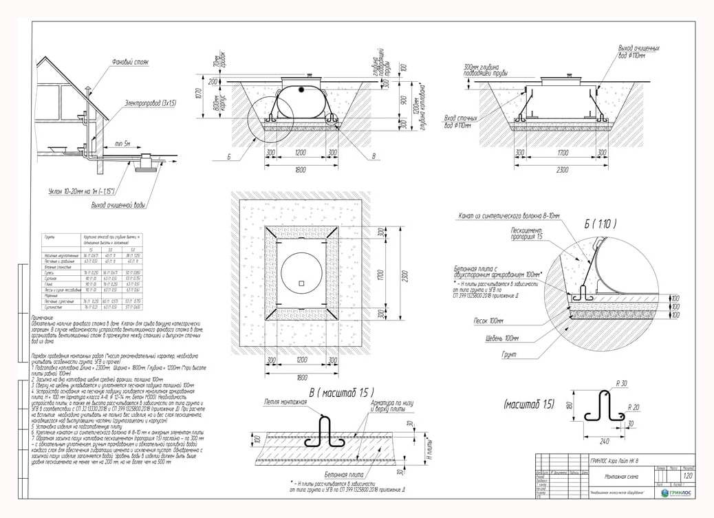 Перед непосредственным монтажом Гринлос Аэро Лайт НК специалисты осуществляют подготовку котлована. Его размеры определяются конструктивными особенностями выбранной модели оборудования. Ознакомиться с данными параметрами можно в приложении к ПС.