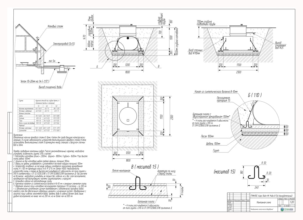 Перед непосредственным монтажом Гринлос Аэро Лайт Пр НК специалисты осуществляют подготовку котлована. Его размеры определяются конструктивными особенностями выбранной модели оборудования. Ознакомиться с данными параметрами можно в приложении к ПС.