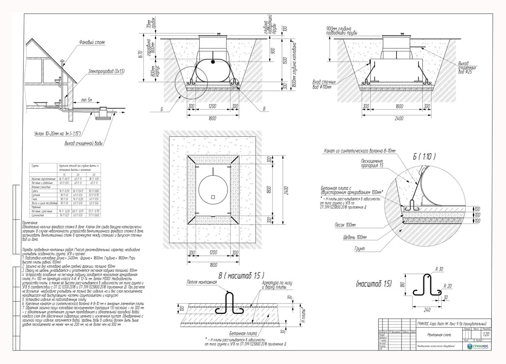 Монтаж септика Гринлос Аэро Лайт 9 Пр НК Лонг