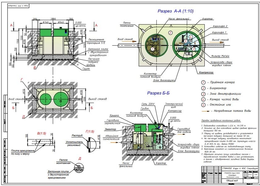 - применение в Гринлос Аэро с КНС 4 небольшого количества средств для чистки унитазов, санфаянса и кухонного оборудования.