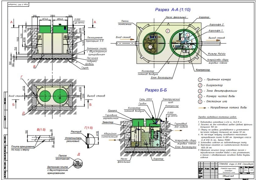 Перед непосредственным монтажом Гринлос Аэро с КНС 6 Пр специалисты осуществляют подготовку котлована. Его размеры определяются конструктивными особенностями выбранной модели оборудования. Ознакомиться с данными параметрами можно в приложении к ПС.