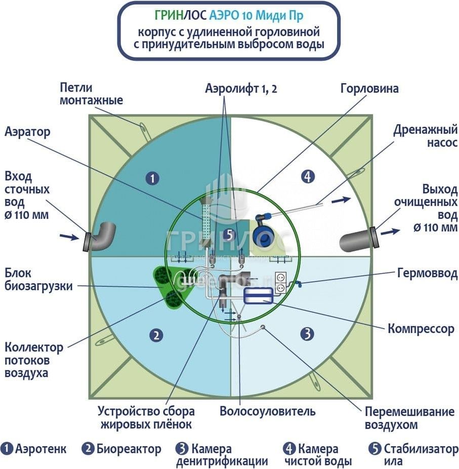 Модификации септика ГРИНЛОС Аэро 10 Пр Миди