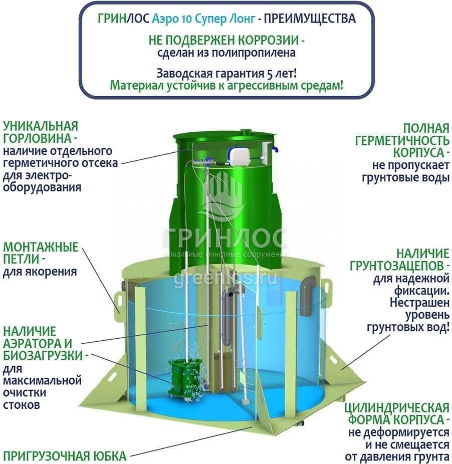 Модификации септика ГРИНЛОС Аэро 10 Супер Лонг