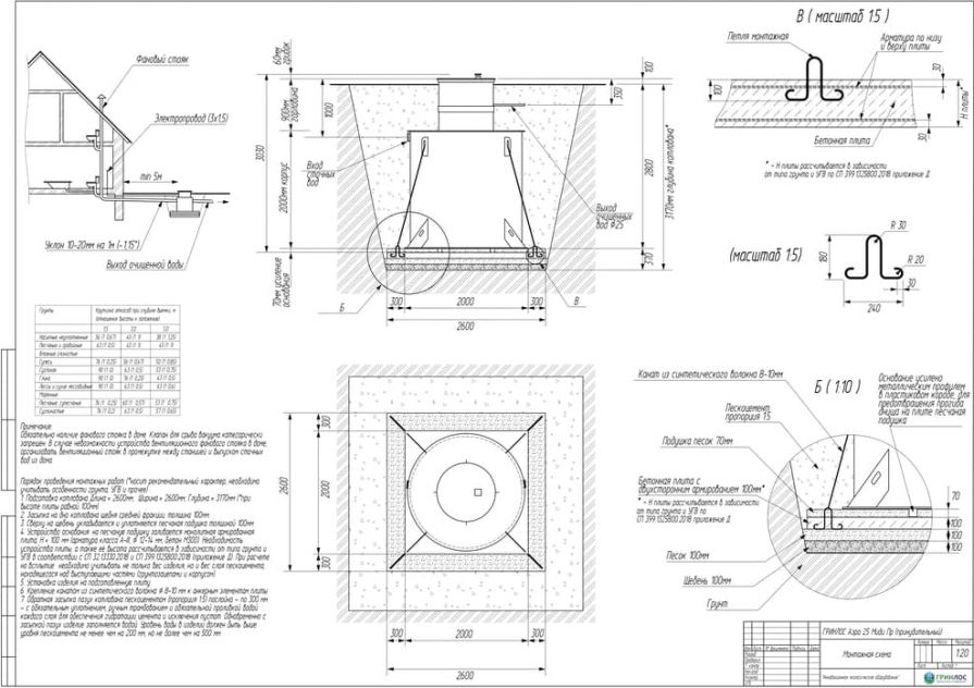 Целесообразно доверить выбор и монтаж оборудования специализированной компании. Перед непосредственным монтажом Оборудования специалисты осуществляют подготовку котлована. Его размеры определяются конструктивными особенностями выбранной модели оборудования. Ознакомиться с данными параметрами можно в приложении к ПС. По боковым стенкам корпуса должно быть сохранено свободное расстояние до грунта не менее 250 мм. Дно котлована нуждается в более тщательной подготовке. Его подвергают выравниванию с последующей засыпкой слоем песка, обладающим толщиной в пределах 10-15 см. Пазухи котлована подвергают обратной засыпке при помощи песка, который послойно поливают водой. Прежде чем приступить к аналогичным работам, емкость оборудования на четверть заполняют водой. Впоследствии количество воды внутри емкости увеличивают соразмерно уровню засыпки песком наружных стенок. Каждые 200 мм песка подвергаются ручному уплотнению.