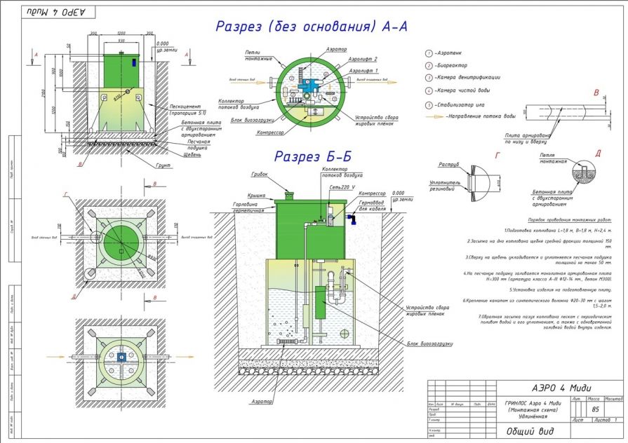 Монтаж септика ГРИНЛОС Аэро 4 Миди