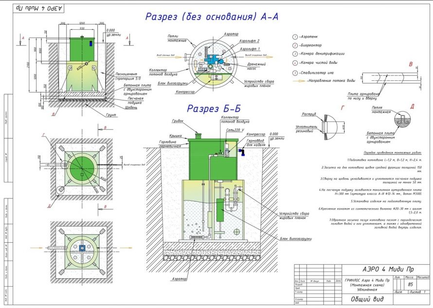 Монтаж септика ГРИНЛОС Аэро 4 Пр Миди