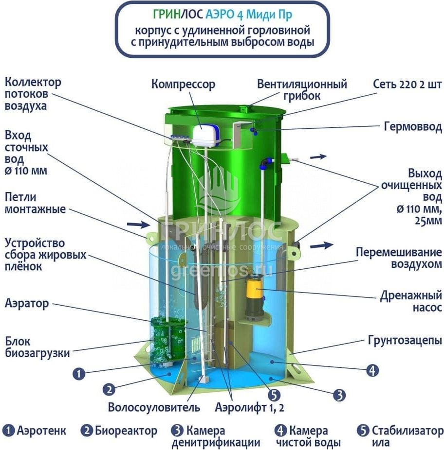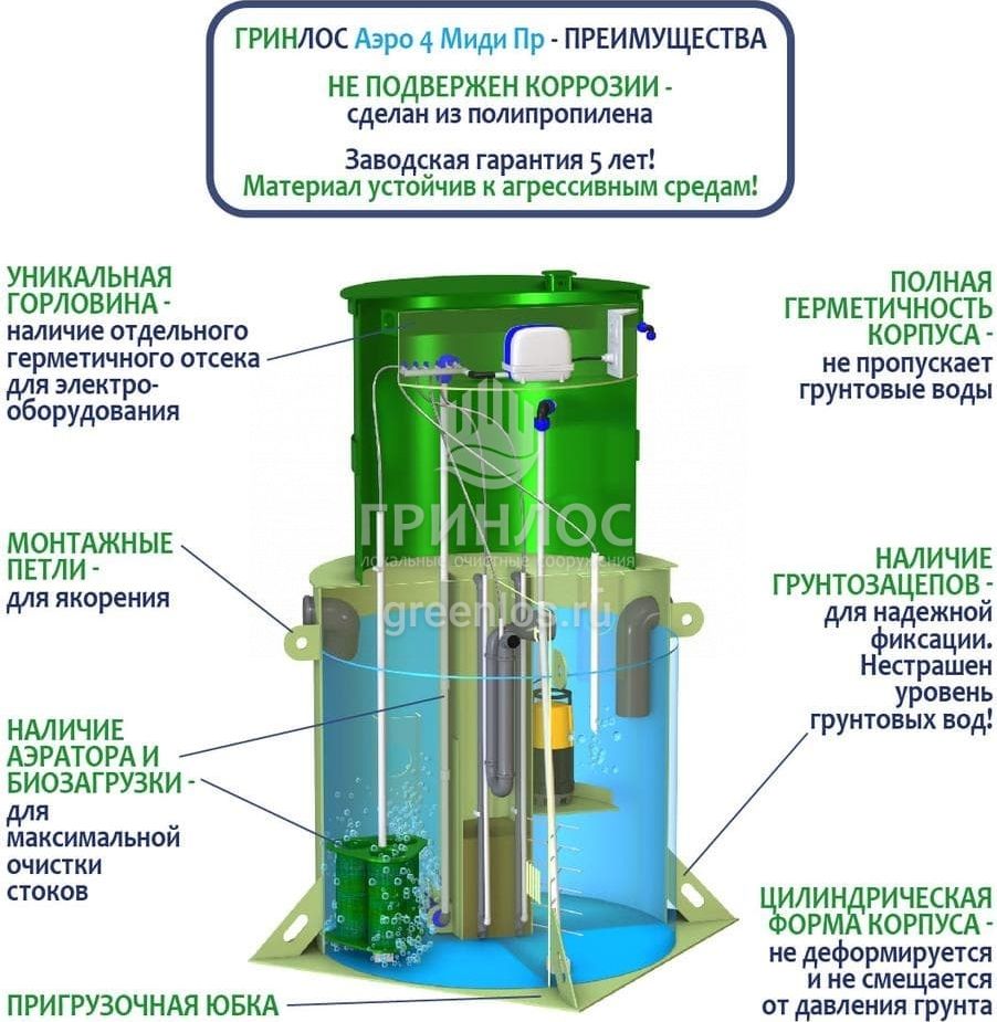 Модификации септика ГРИНЛОС Аэро 4 Пр Миди