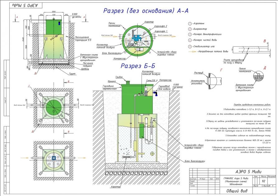 Монтаж септика ГРИНЛОС Аэро 5 Миди