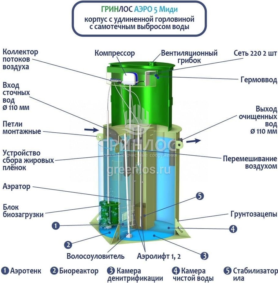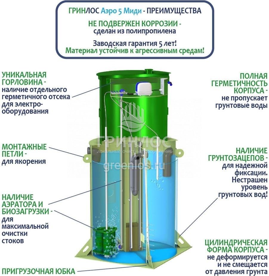 Модификации септика ГРИНЛОС Аэро 5 Миди