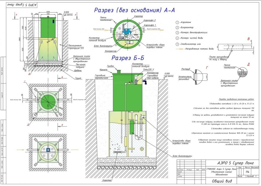 Монтаж септика ГРИНЛОС Аэро 5 Супер Лонг
