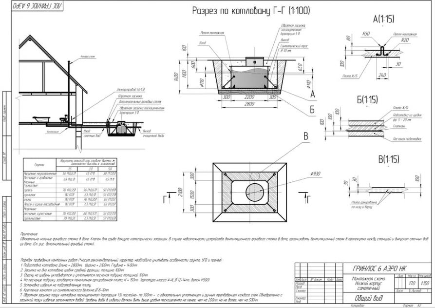 Монтаж септика ГРИНЛОС Аэро 6 низкий корпус