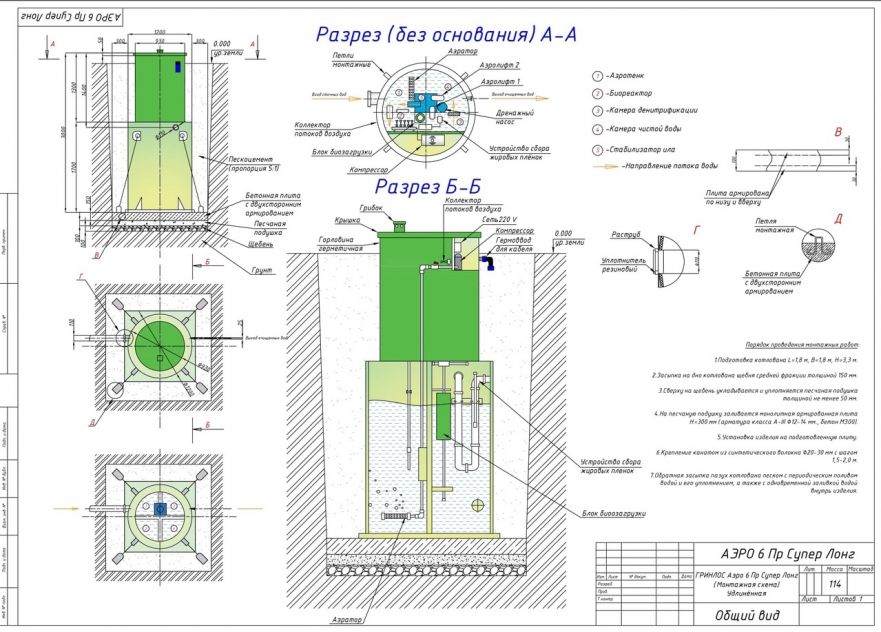 Монтаж септика ГРИНЛОС Аэро 6 Пр Супер Лонг