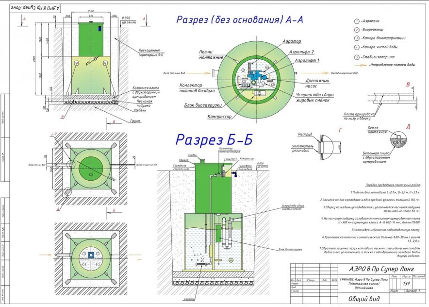Монтаж септика ГРИНЛОС Аэро 8 Пр Супер Лонг