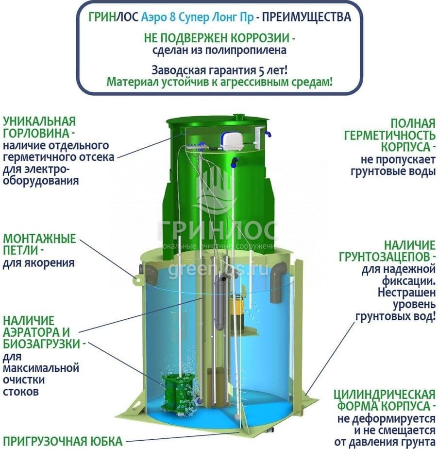 Модификации септика ГРИНЛОС Аэро 8 Пр Супер Лонг