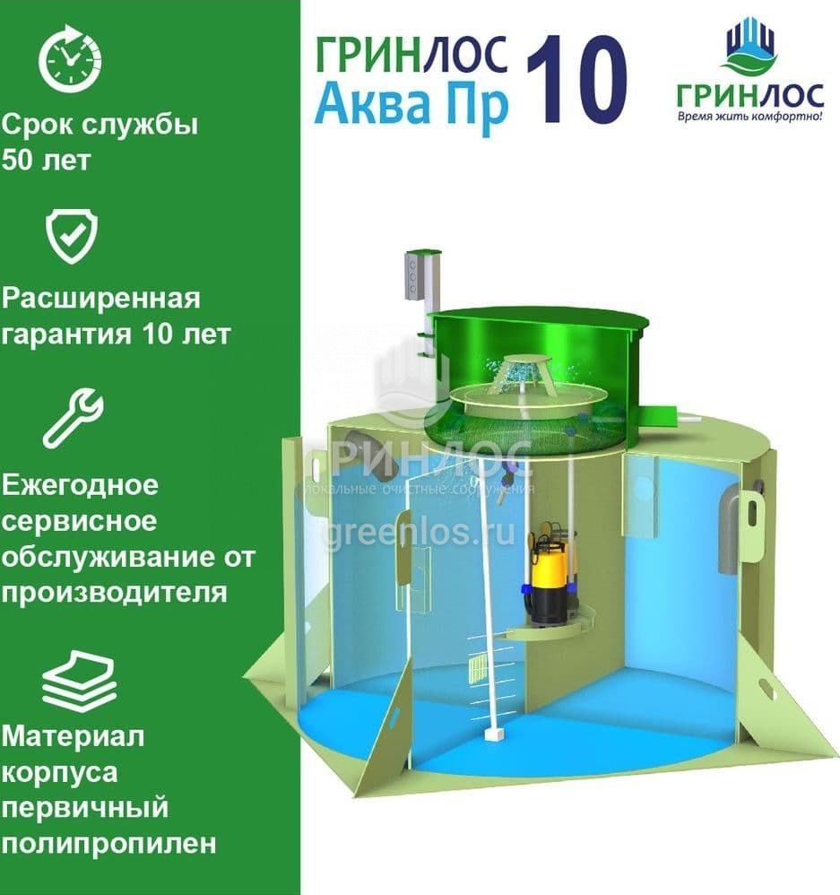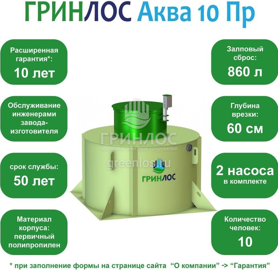 Отличительными особенностями септика ГРИНЛОС Аква 10 Пр являются: