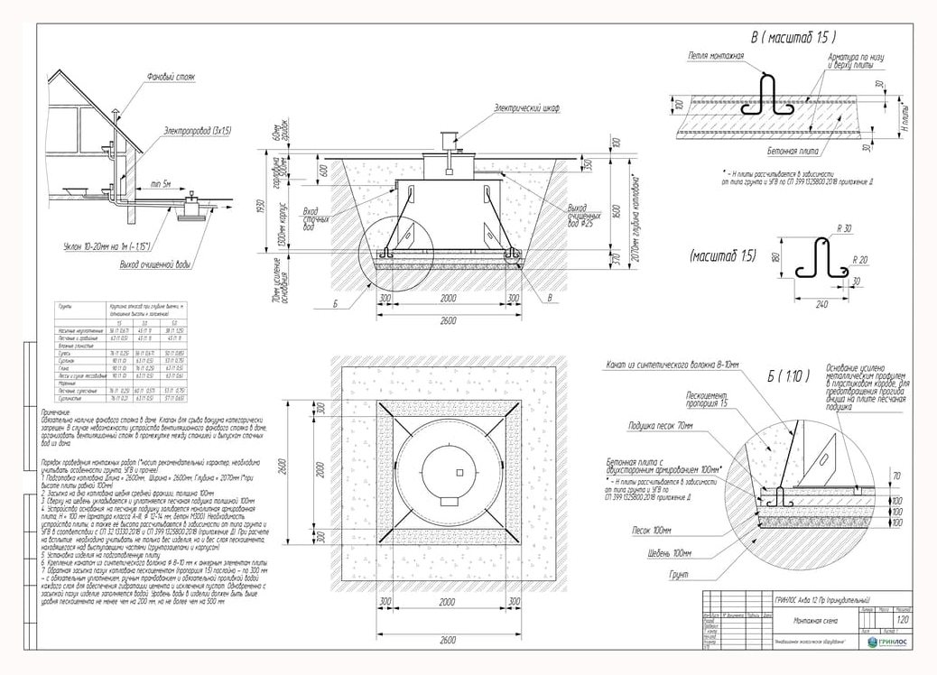 - Высота корпуса — 1800 мм. Станция подходит для монтажа во все виды почв: песок, глина, суглинок, грунты с высоким уровнем грунтовых вод.