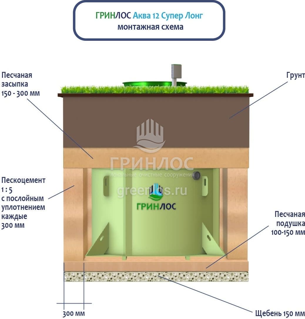 Модификации септика ГРИНЛОС Аква 12 Супер Лонг