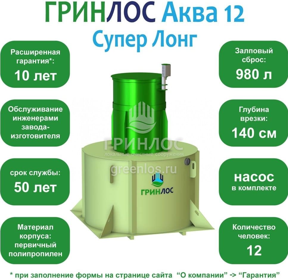 Септик ГРИНЛОС Аква 12 Супер Лонг в Санкт-Петербурге