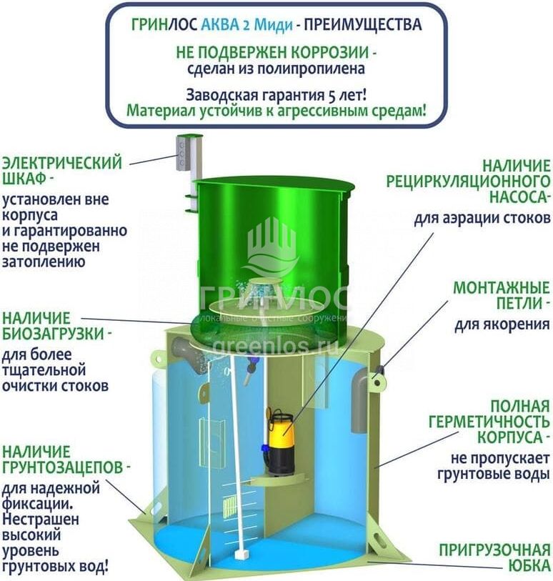 Отличительными особенностями септика ГРИНЛОС Аква 2 Миди являются:
