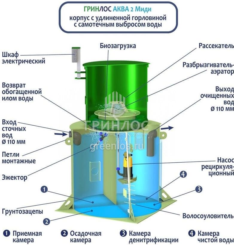 Модификации септика ГРИНЛОС Аква 2 Миди