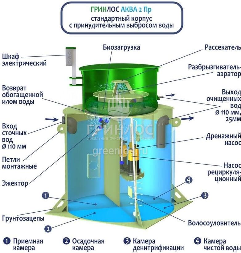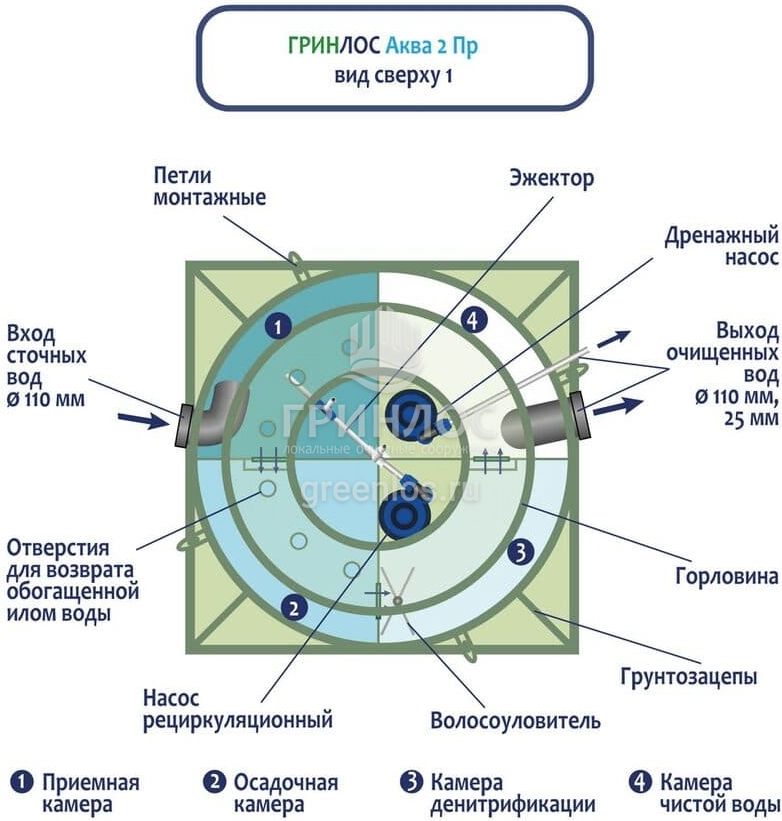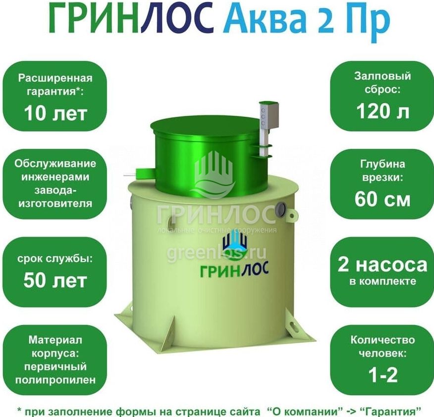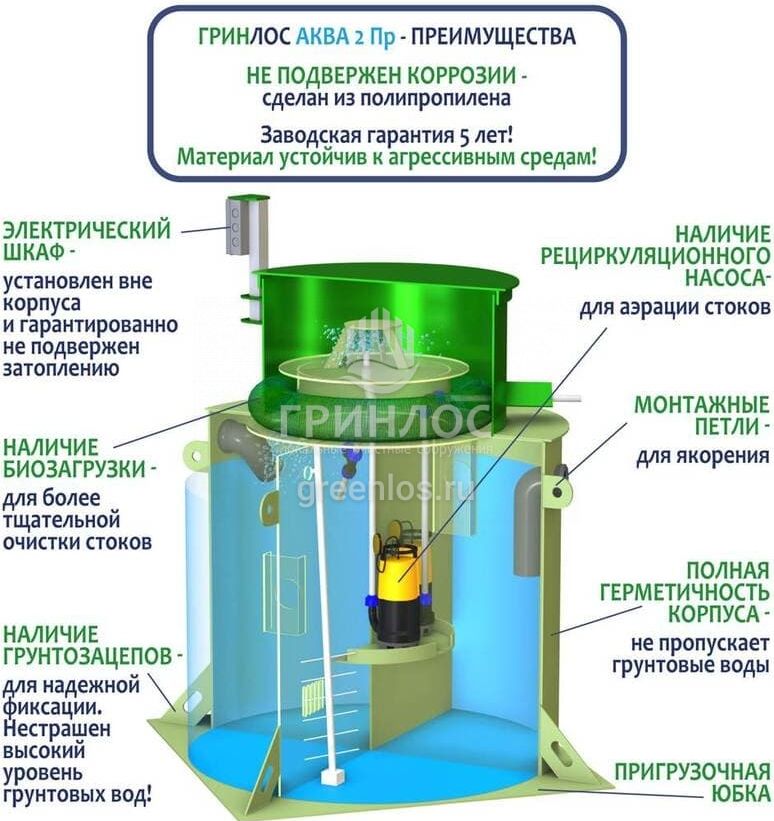 Отличительными особенностями септика ГРИНЛОС Аква 2 Пр являются: