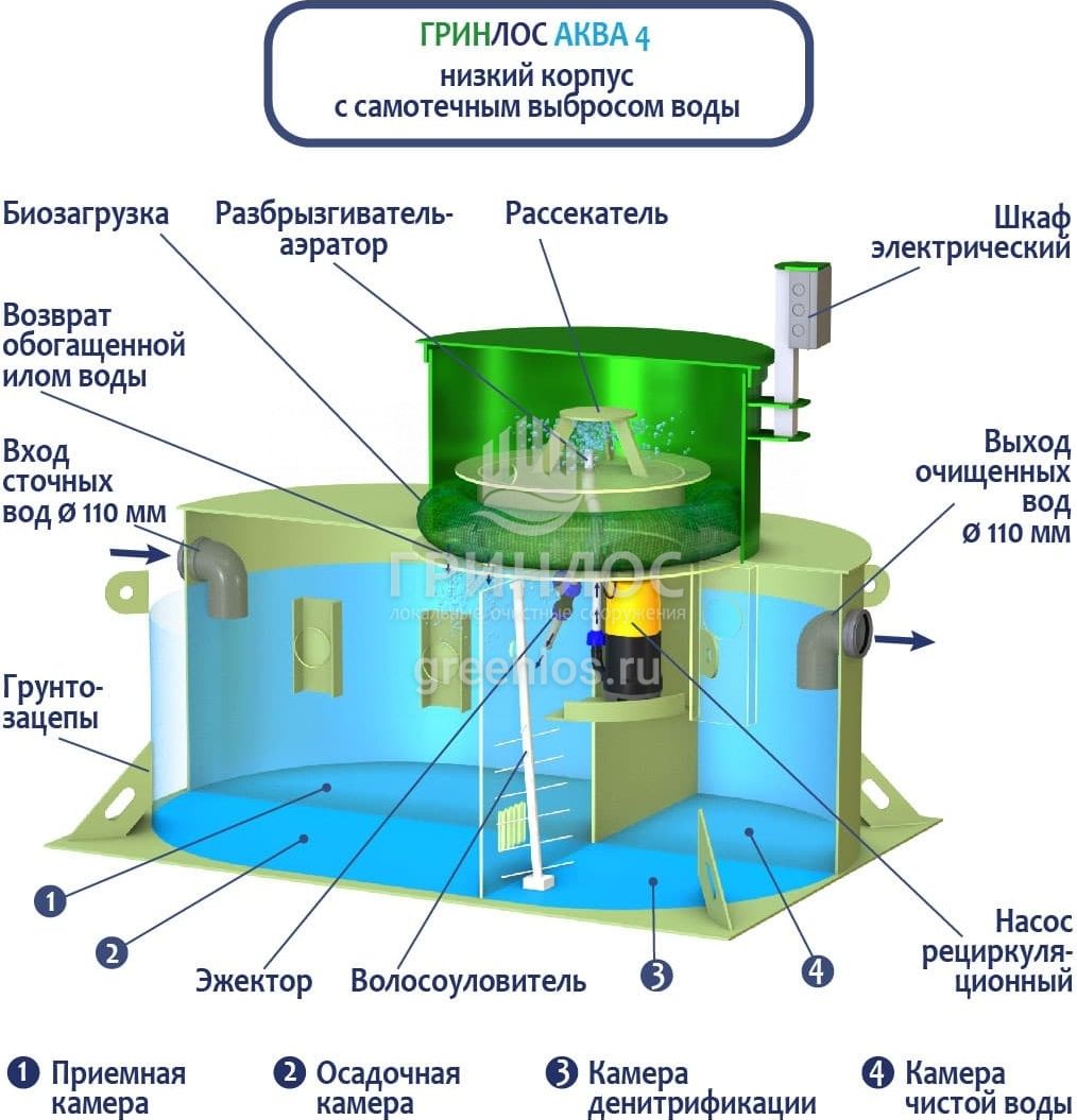 Модификации септика ГРИНЛОС Аква 4 низкий корпус