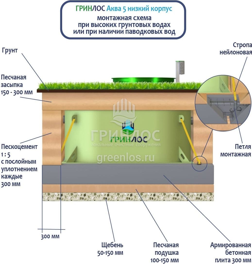 Монтаж септика ГРИНЛОС Аква 5 низкий корпус