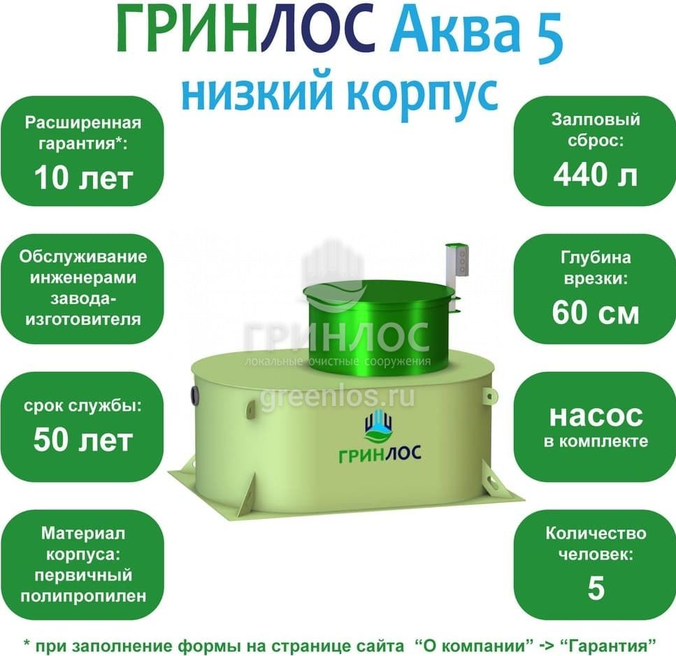 Модификации септика ГРИНЛОС Аква 5 низкий корпус