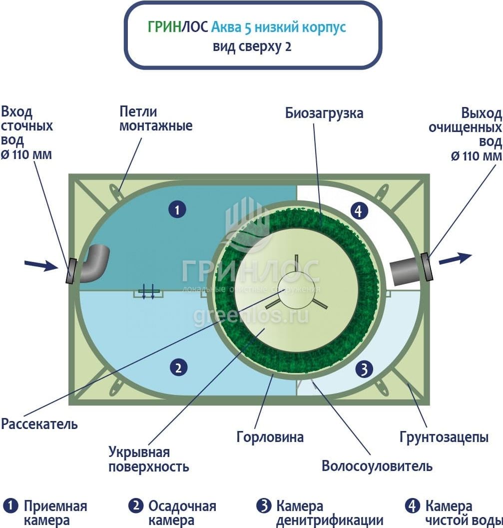 Отличительными особенностями септика ГРИНЛОС Аква 5 низкий корпус являются: