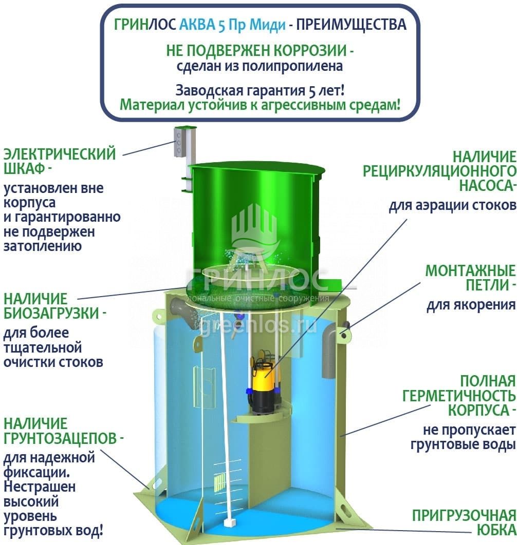 Модификации септика ГРИНЛОС Аква 5 Пр Миди