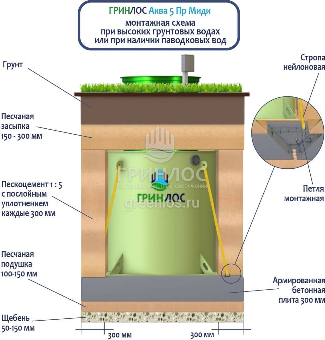 Монтаж септика ГРИНЛОС Аква 5 Пр Миди