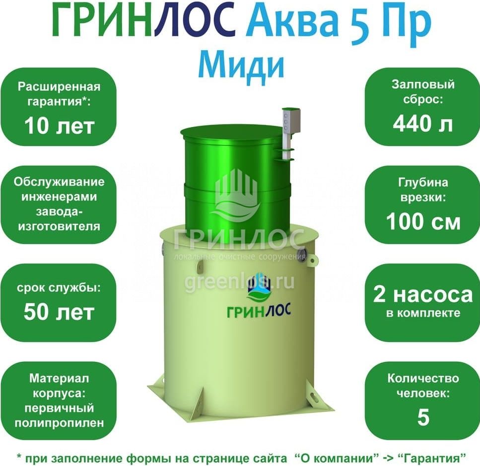 Септик ГРИНЛОС Аква 5 Пр Миди в Санкт-Петербурге