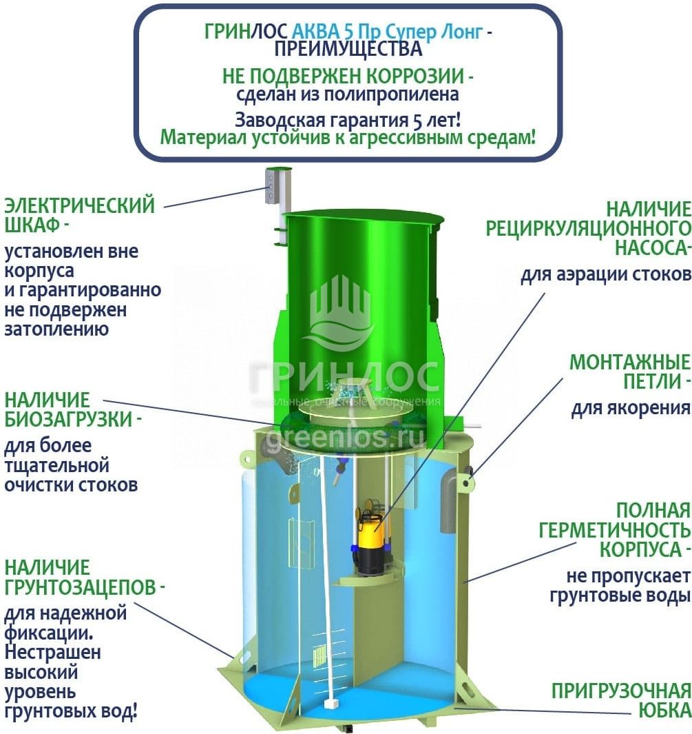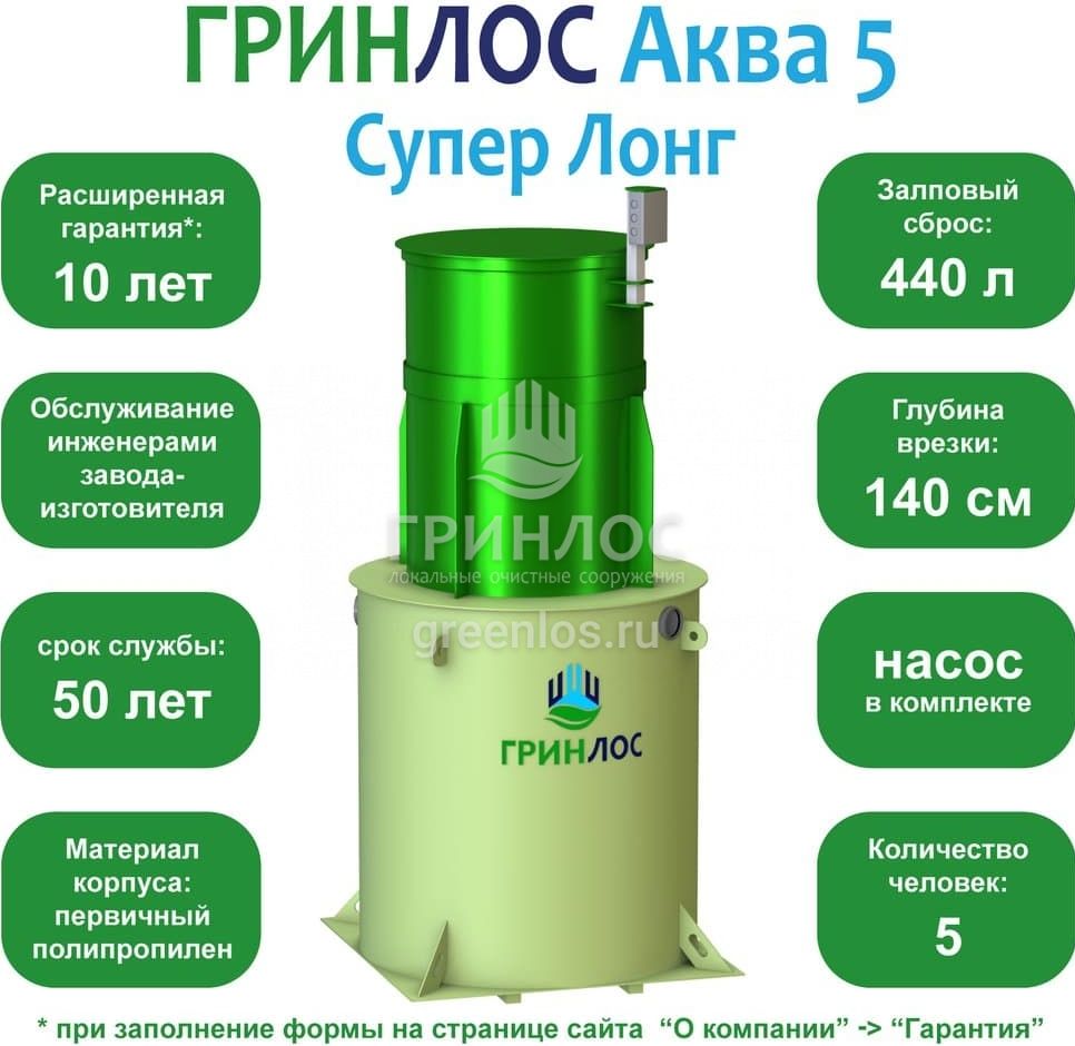 Модификации септика ГРИНЛОС Аква 5 Супер Лонг